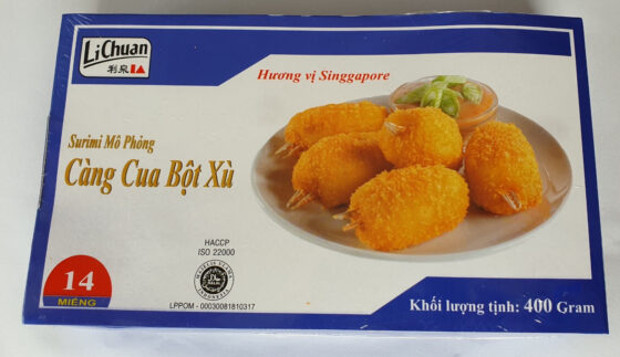 Surimi mô phỏng càng cua, bên ngoài bột xù giòn rụm, bên trong dai mềm, giữ vị ngọt tự nhiên của cá.