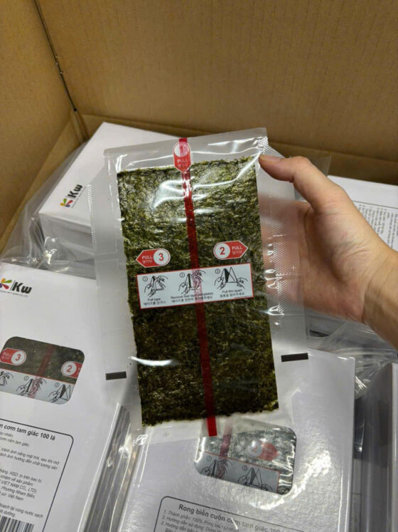 • Độ giòn và hương vị tự nhiên: Rong biển K-Wook có độ giòn cao, không bị dai, kết hợp với vị mặn nhẹ tự nhiên, làm tăng thêm độ hấp dẫn cho món cơm nắm.